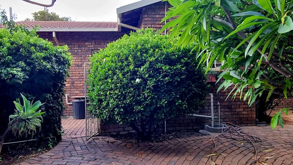 Beautiful sunny family haven nestling in lush treed garden with several fruit trees - fig, lemon ,miniature orange, pecan nut & plum. Spacious with lots of natural light enhancing the open lounge and dining room - large windows - laminated floors (lounge floor slightly damaged) with double glass door ( one pane cracked) opening onto paved patio with awning & thatch umbrella .Chef's delight - well fitted tiled kitchen with Smeg gas hob and oven, Smeg double basin, space for two appliances and a double door fridge/freezer. Granite tops, custom made mobile unit with four drawers and solid wooden cupboards. Three spacious sunny bedrooms ( laminated floors - slightly damaged) - main en suite - shower, basin and toilet - renovated - offering ample built in cupboards and natural light. Second renovated bathroom - bath ( slightly marked), basin ( hairline crack) and toilet. Third bedroom/study located in separate wing ideal as guestroom/study/home office. Prepaid water and electricity, electric fence, Wendy storage hut, single manual garage and enclosed single carport. Two water rainwater tanks - each 18 000 litre. Fibre connection - choose your preferred provider. Outside neat staff toilet. Close to all amenities, N1 on/off ramps Gautrain bus stop & station, schools, Midway Mews Shopping Centre and about 4km from well known Mall of Africa. 24/7 manned security boom with regular patrols.
