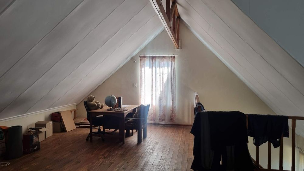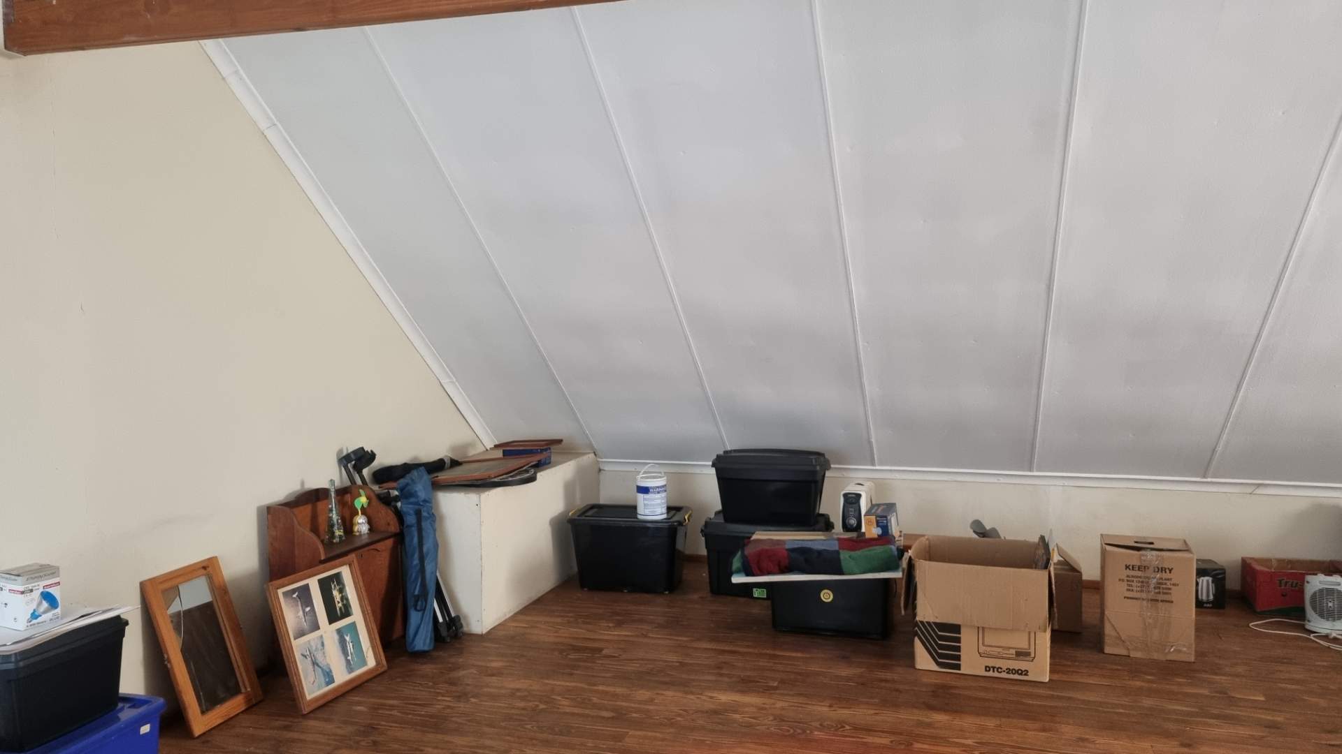 Carpeted groundfloor lounge, dining room and two bedroooms. Tiled well fitted kitchen. One bathroom with handshower in bath. Huge upstairs loft space....can be divided into main en suite bedrooom and bathroom and/or pyjama lounge/study.